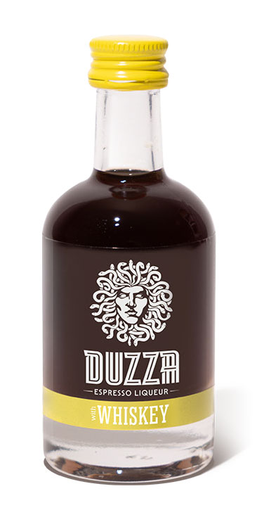 DUZZA espresso liqueur Whisky 20% vol, 50ml E Ingredients: Water, coffee, sugar syrup,neutral spirit, whisky, natural oak flavouring, caramel E150a. 655 kJ, 157 kCal
